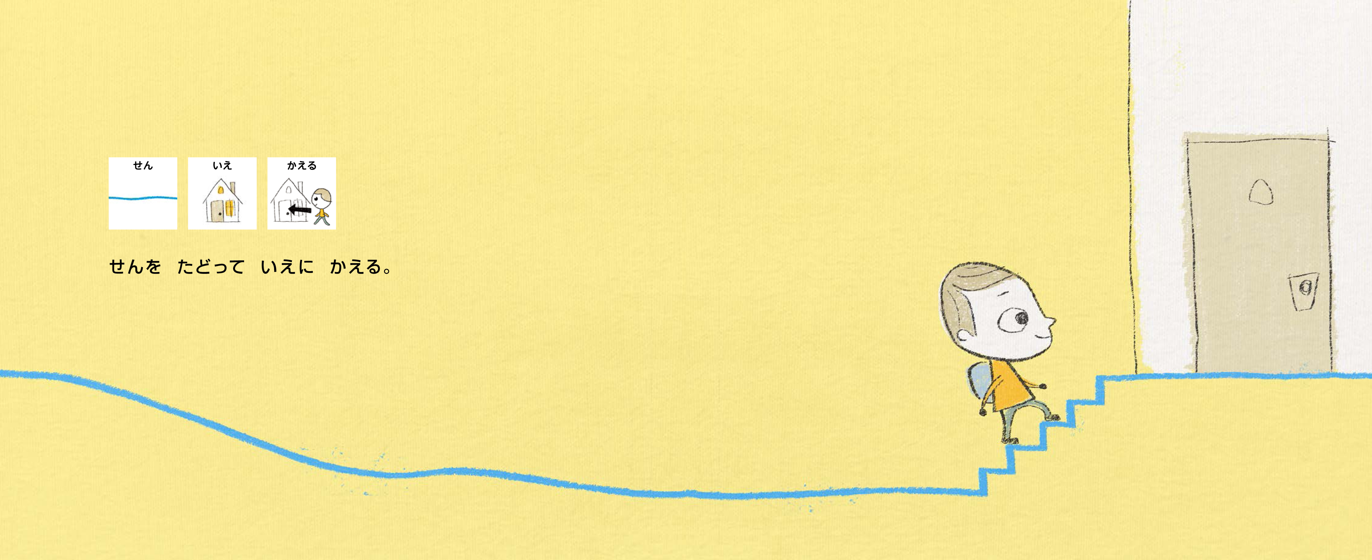 この絵本は、著者のマリアさんが、「線」が好きな自閉症の男の子マヌエルくんと知り合ったことによって生まれた絵本です。日本版には、文字やお話の内容の理解の助けとなる「ピクトグラム(言葉を絵で表現した絵文字)」がついています。